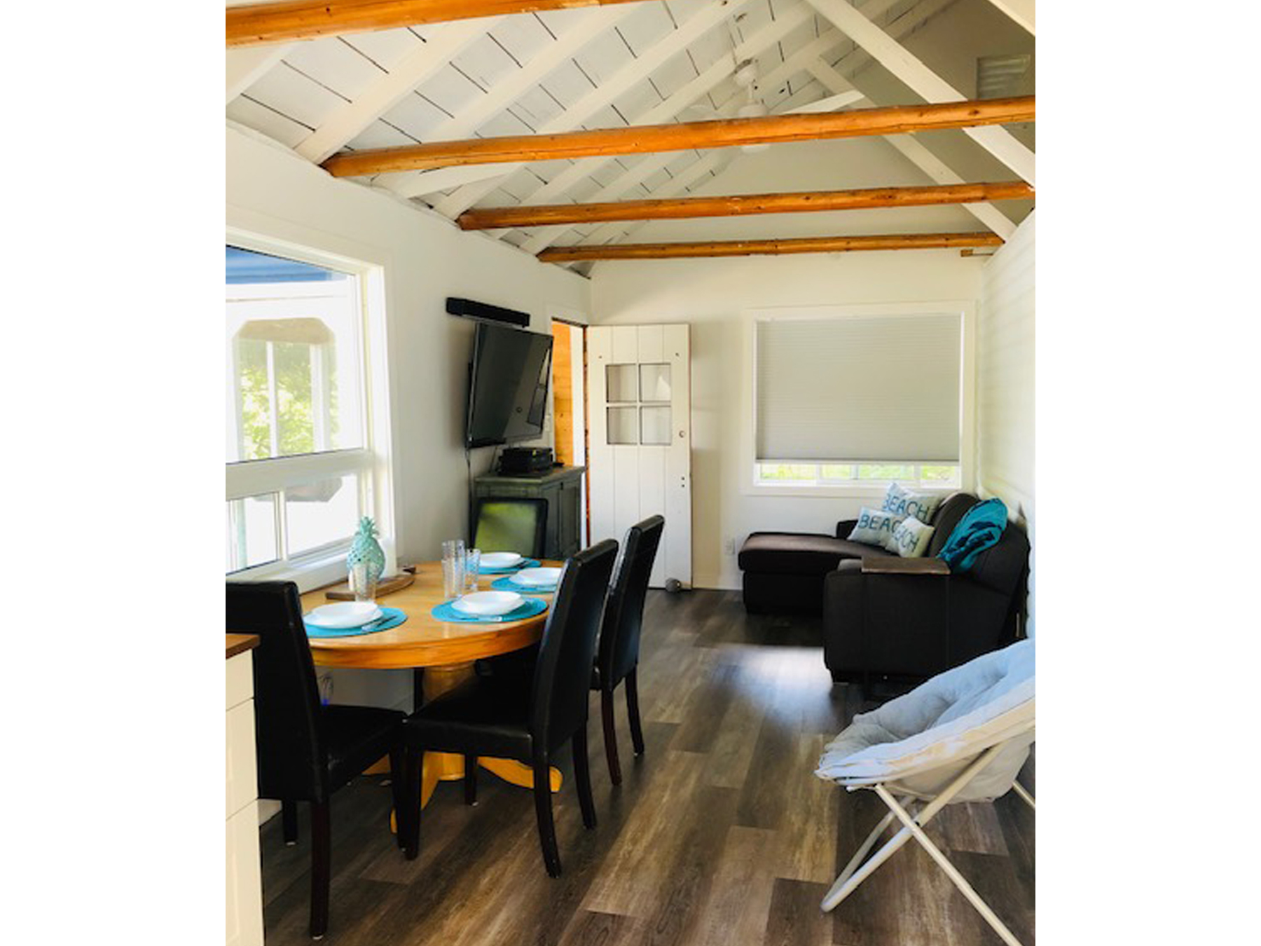The Cabin has all the views you’re waiting for! Just steps from the sandy beach, this spacious cabin can comfortably accommodate an additional six people in three, airy bedrooms, has its own full bathroom and fully functioning kitchen, as well as a Muskoka room and lakefront deck to enjoy your morning coffee or afternoon drinks. While it isn’t open during the winter months, it serves large groups well throughout the spring, summer, and fall.
