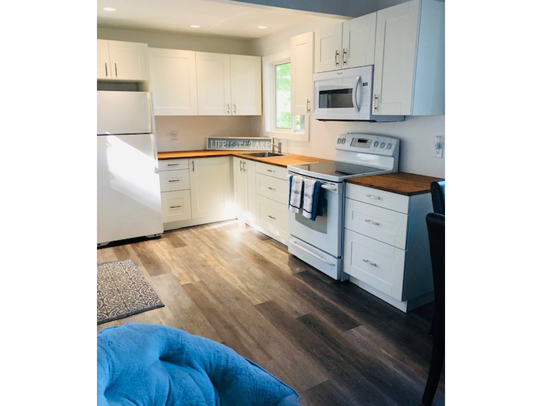 The fully-winterized Lakeview House is everything you’ve ever dreamed of! With vaulted ceilings and two floors, this airy house comfortably sleeps 7 people across 3 bedrooms, has two full bathrooms, a large kitchen with a walk-out to a gorgeous deck to enjoy lakeview meals, and tons of entertainment. Ready to host you year-round, you’ll relish in all the colours of the seasons thanks to its beautiful lake view.